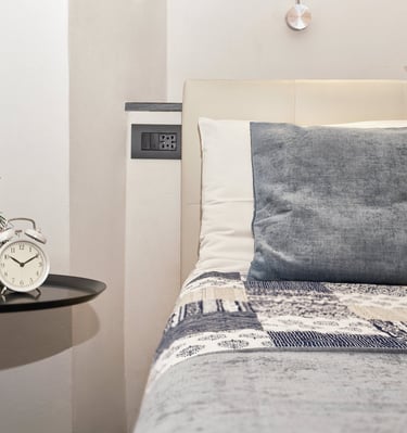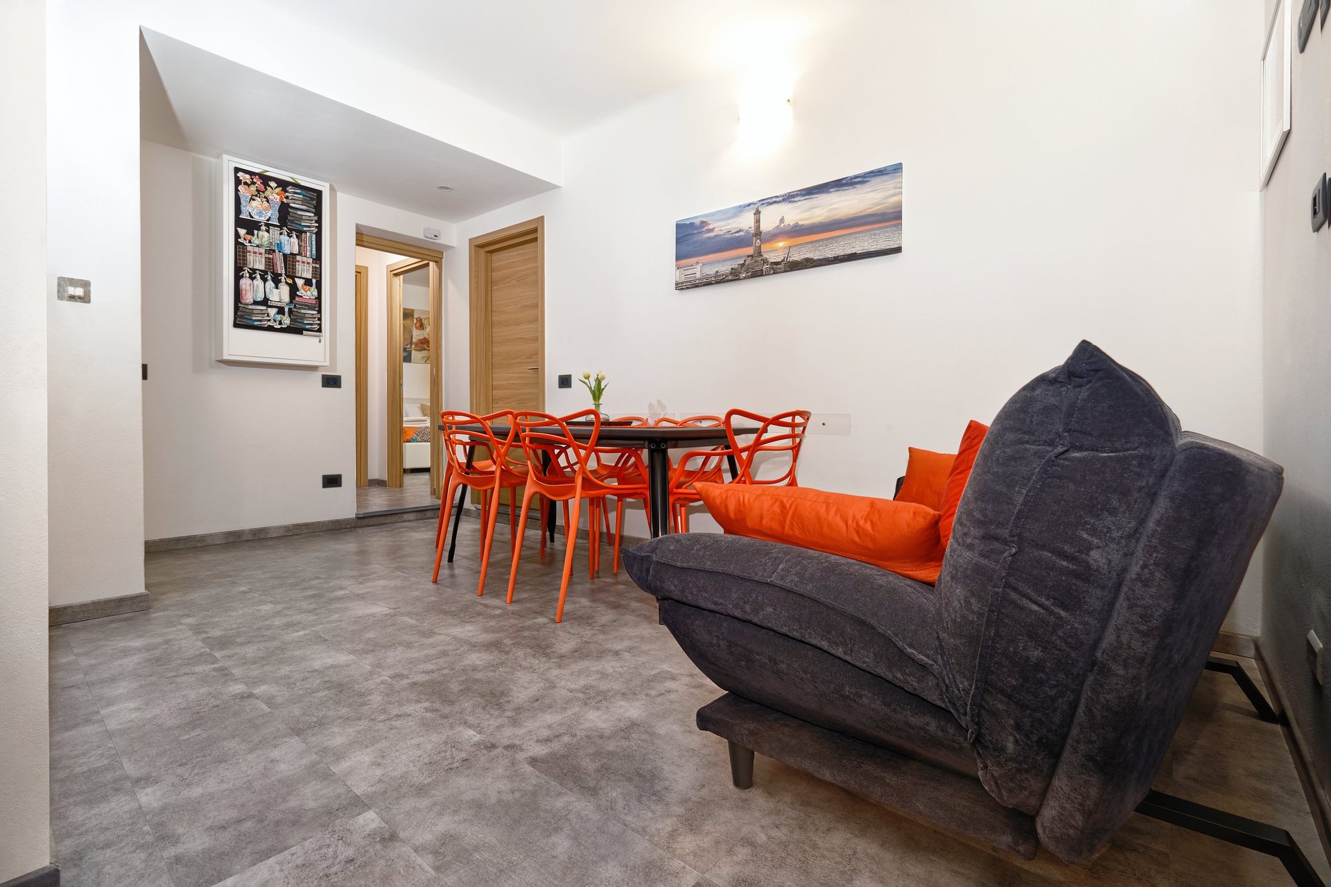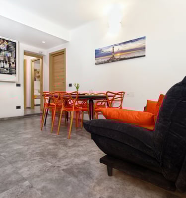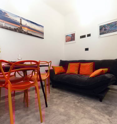 Elegante e caratterizzata da soffitti originali alti 4,60 metri che donano grande luminosità e ampiezza agli spazi. I colori ispirati al mare e al Porto Antico creano un’atmosfera raffinata e rilassante.
