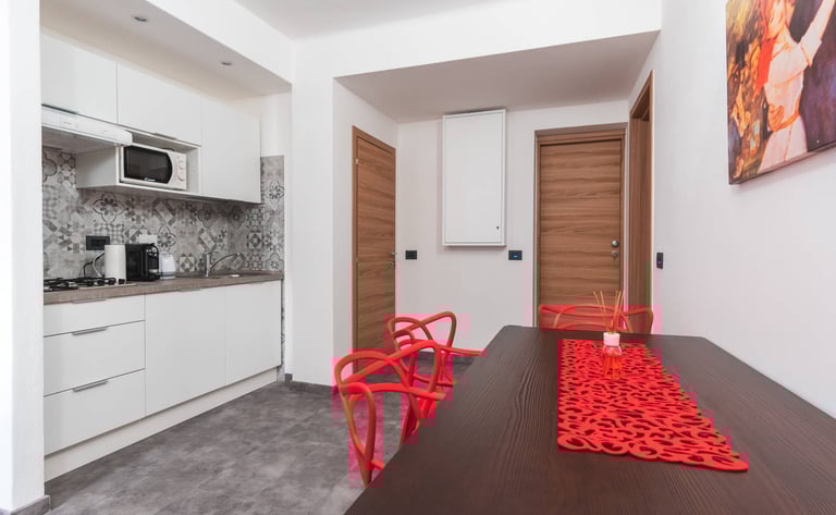 L’appartamento è composto da due camere indipendenti, spaziose e confortevoli, ciascuna dotata di bagno privato. La struttura dispone inoltre di una zona giorno funzionale e ben organizzata, con cucina attrezzata e spazi pensati per offrire tutto il necessario a un soggiorno piacevole e senza pensieri.