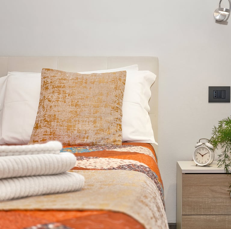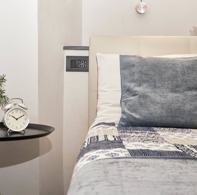 Affacciata sul suggestivo piazzale della Chiesa di San Cosimo, nel cuore dei caruggi, questa camera accogliente dai toni caldi offre un’atmosfera autentica e rilassante.